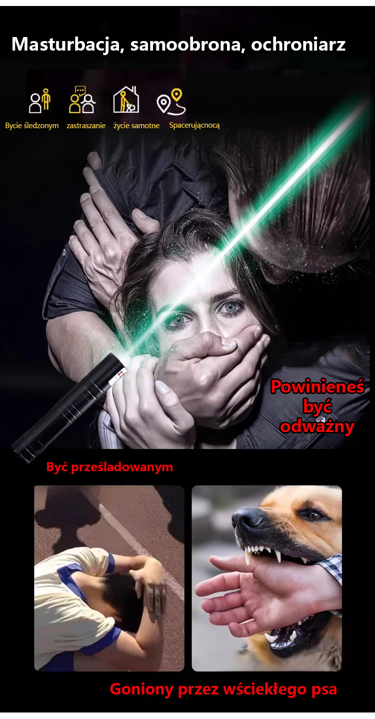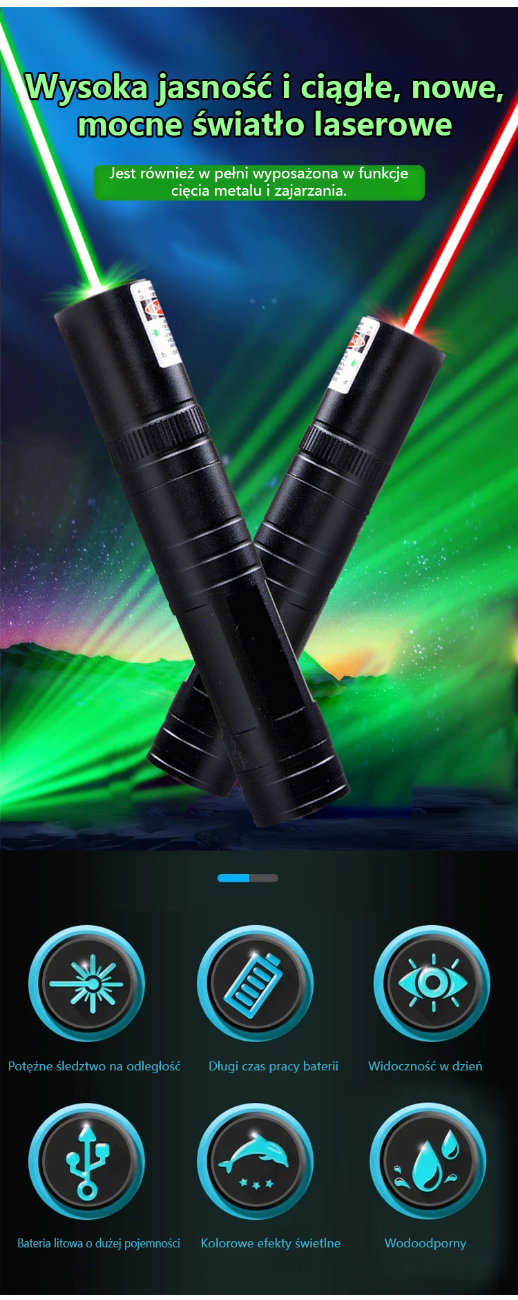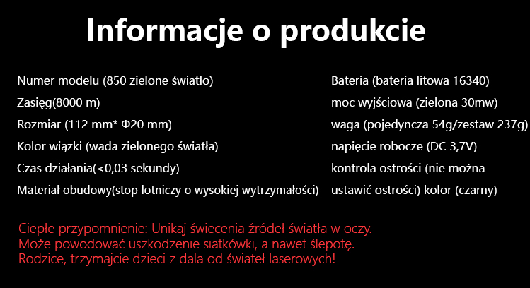 ⛺ Niezbędnik do wypraw na zewnątrz ✨ Dwukolorowy laser, odpowiedni do użytku wewnętrznego i zewnętrznego ✨ Bardzo daleki zasięg, widoczny z odległości 10 kilometrów ✨ Bateria 18650, wysokowydajne wyjście ✨ Materiał aluminiowy, trwałość do 10 lat