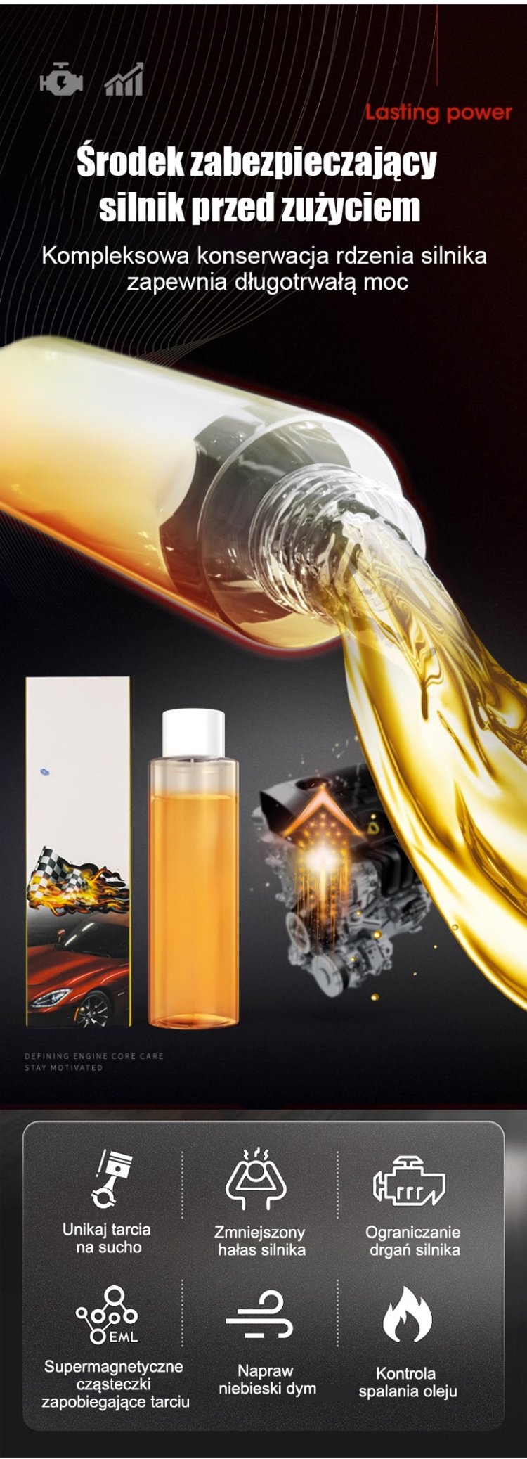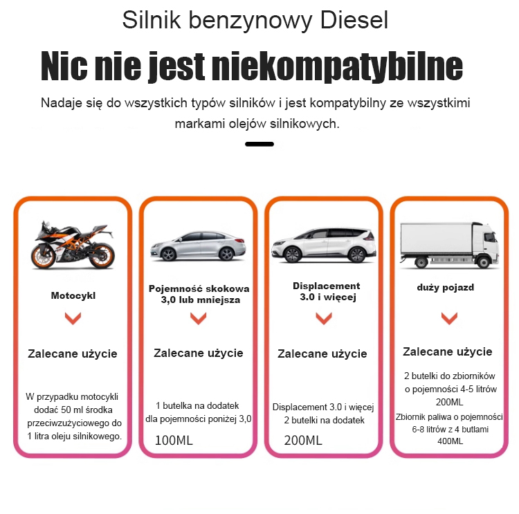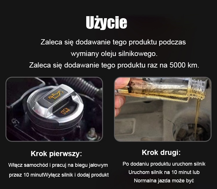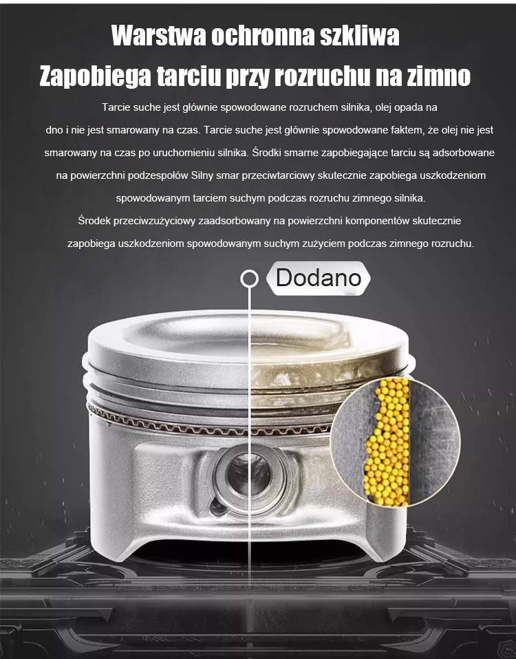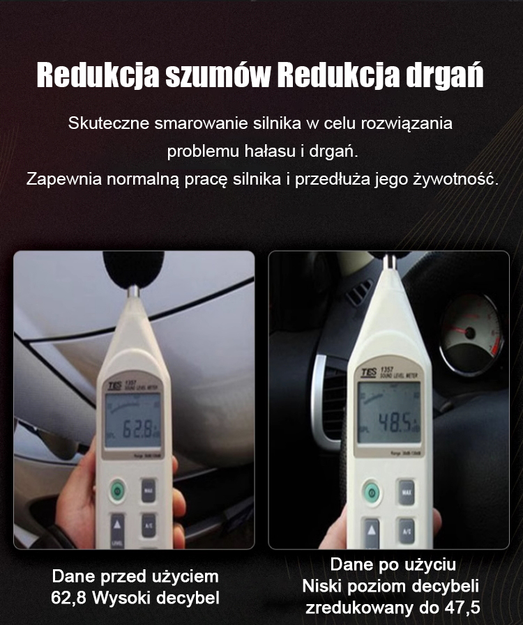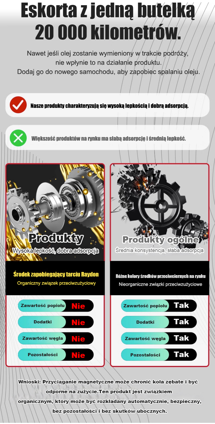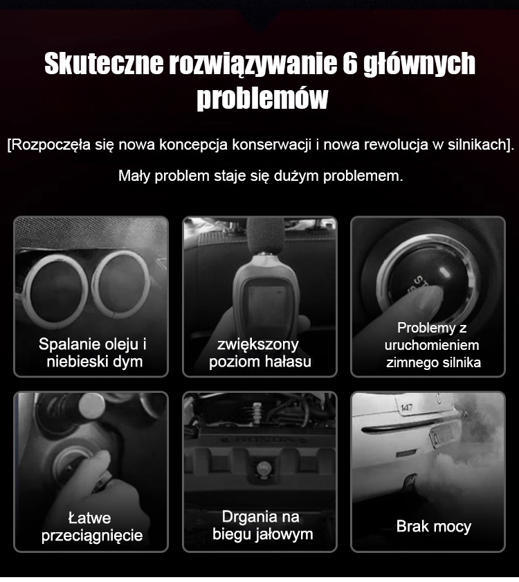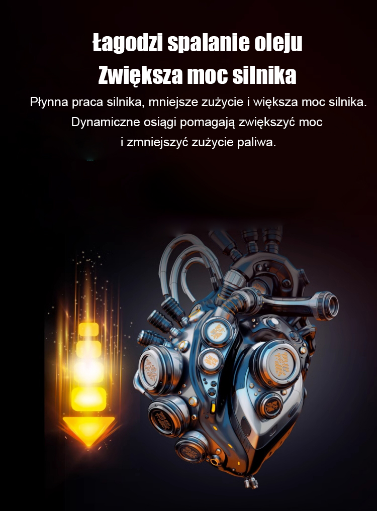✅ Zmniejsza hałas i wibracje, zwiększa moc silnika, obniża poziom hałasu i zużycie paliwa, wydłuża żywotność, redukuje emisję niebieskiego dymu i dodatkowo poprawia wydajność silnika.