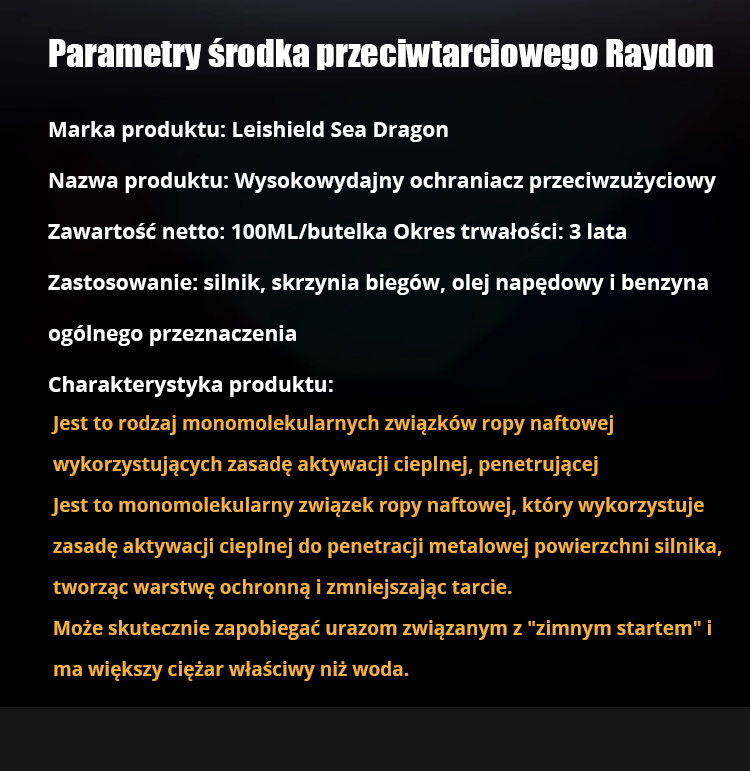 Wysokowydajny środek przeciwzużyciowy do silnika