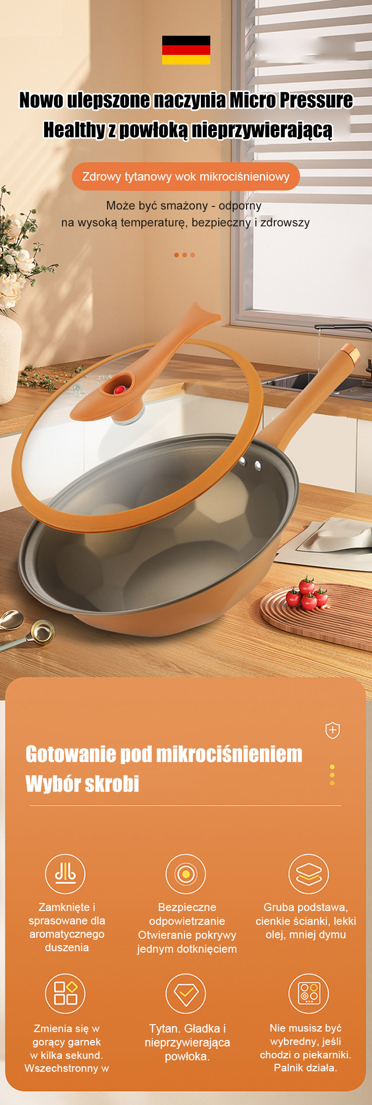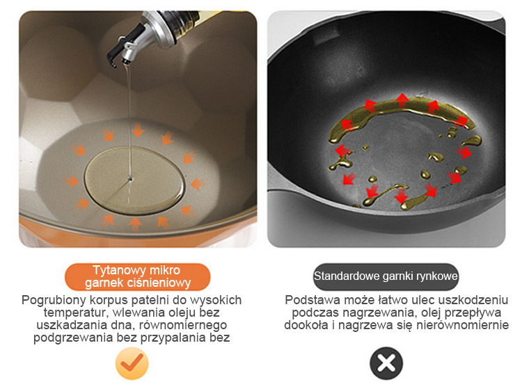 Tytanowy garnek do zdrowego gotowania z powłoką nieprzywierającą i mikrociśnieniem