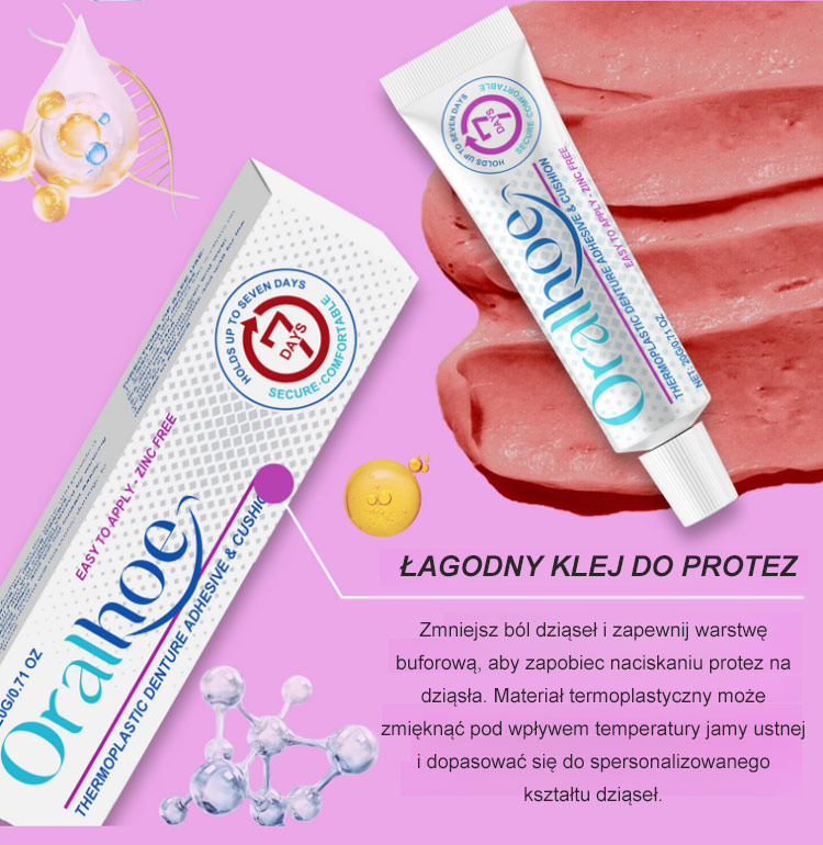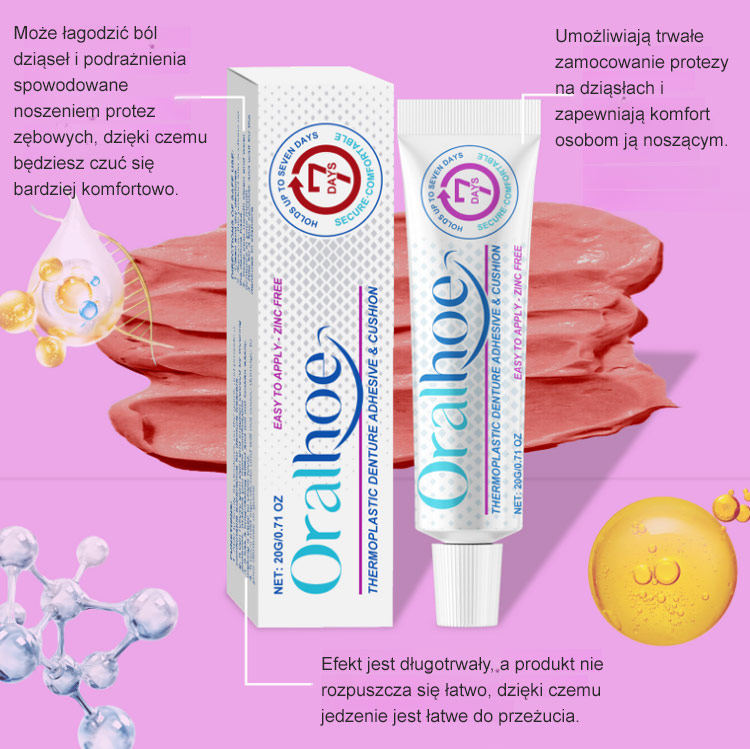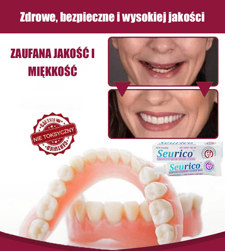 🔒Skutecznie wypełnia szczeliny między protezą a dziąsłami, zapewniając stabilne mocowanie